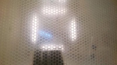 Sklo na FUD BLOKU se presentovalo konstrukcí vestavěnou do prostoru vyhrazené místnosti, pokrytou bublinkovou fólií. Tím vznikl jakýsi bezpečný prostor. Prostor obalený v bublinách, ve kterém je možné bezpečně skladovat a vystavovat sklo. Instalace měla též audio vizuální přesah. Celou dobu otevření instalace byl v pozadí slyšet zvuk praskání plastových „bublin“, což v člověku budilo zvláštní pocit, že po bublinkovou fólií pokryté podlaze někdo chodí i když přes průsvitné z venku nasvícené stěny expozice je vidět, že je zrovna prázdná.