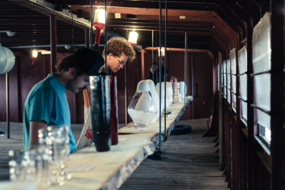 Exhibition of students and graduates of the Atelier of Glass UMPRUM, which took place from 11 July to 31 July 2015 in the (A) VOID Floating Gallery in Náplavka.