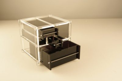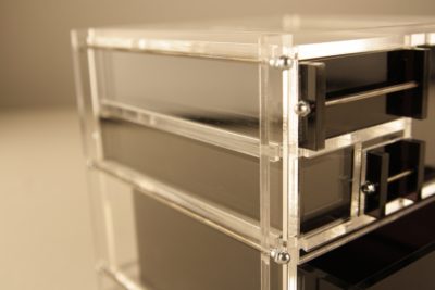 V rámci kolekce vznikly dvě série prstenů – šest prstenů z nerezové oceli a achátů a šest z hliníku a plexiskla. Podobně jako s prsteny vznikly i dva typy šperkovnic – jedna otevřená a jedna uzavřená.