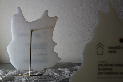 Spilled milk (2020) – a symbolic puddle of spilled milk, which the winners were not afraid of and thanks to this they were able to improve the lives of people in contemporary cities. (due to the Czech saying – „do not cry over the spilled milk“)